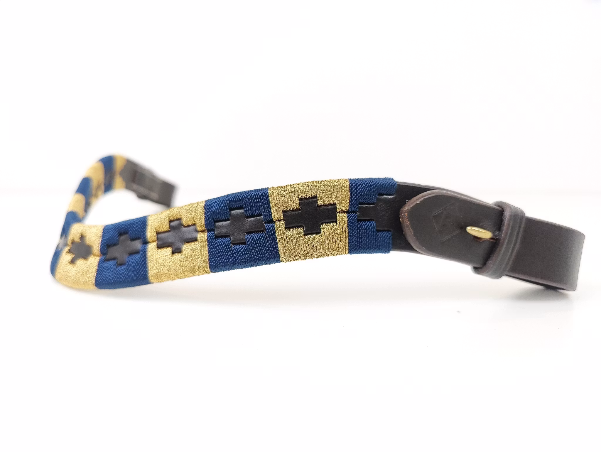 Snabbknäppen i matt mässing på vardera sida, passar träns upp till 3,5 cm i bredd.